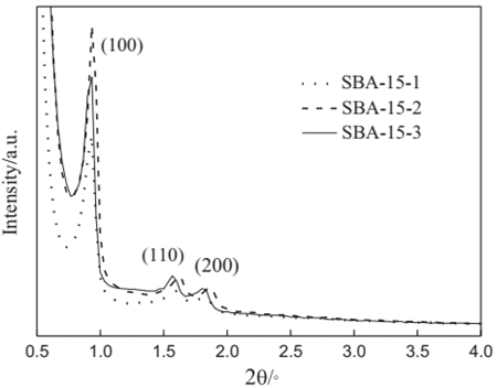 Figure 3 XRD patterns of SBA-15 synthesized by addition of different amounts of PVA powder and calcined for 6 h at 550 1C in air. [12]